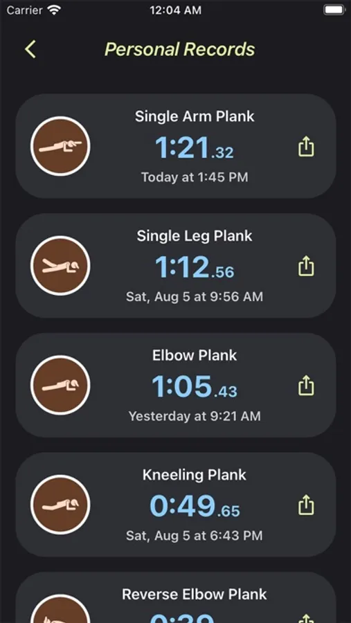 Stay motivated and inspired by tracking your personal records in a user-friendly table format. Witness your steady progress as you challenge yourself to beat your previous plank times.