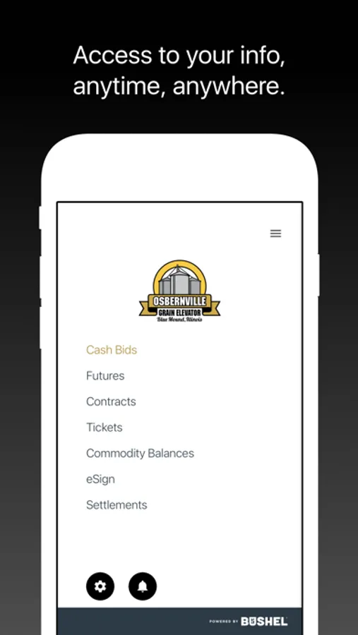 The Osbernville Grain Elevator app is free, secure, and developed by the industry-leading Bushel platform.