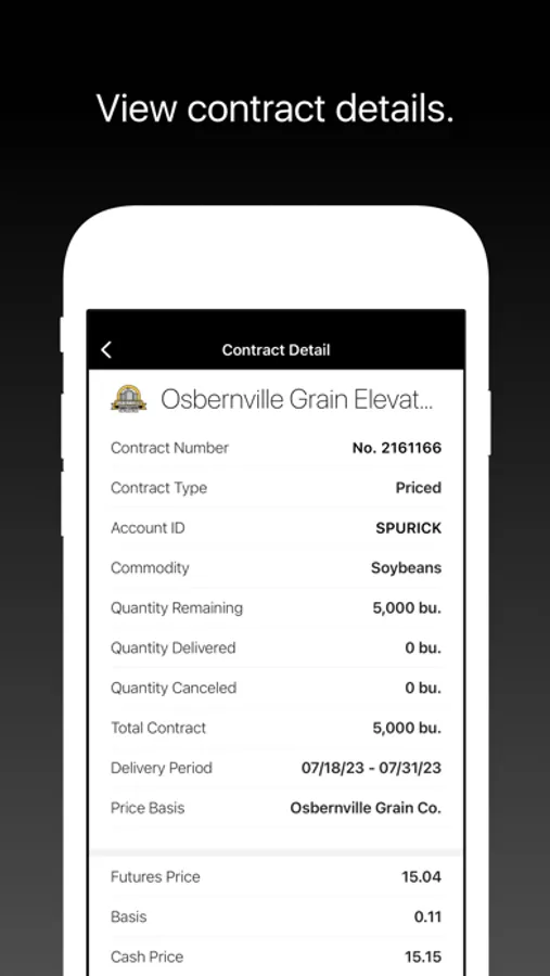 The Osbernville Grain Elevator app is an essential mobile solution that connects your operation to your grain facility, providing real-time, actionable information to help you manage and grow your business.
