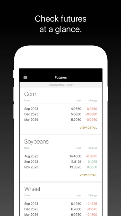 Futures: See Grains, Feed, Livestock, and Ethanol futures listed in order of your preference