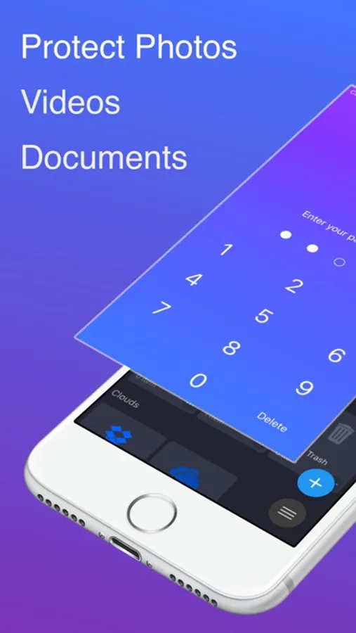 • Protect your pictures, videos and files with PIN using 4 to 8 digits, FaceID or TouchID