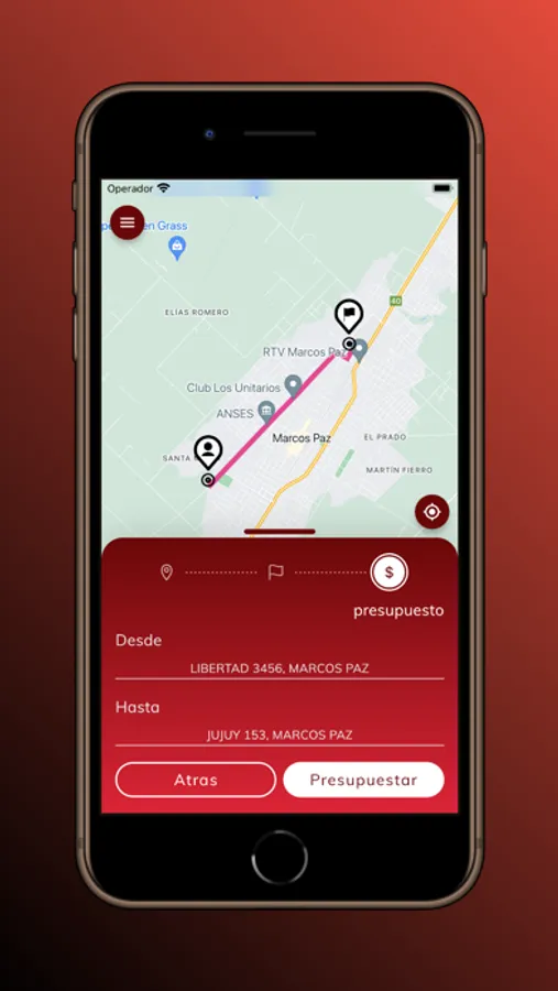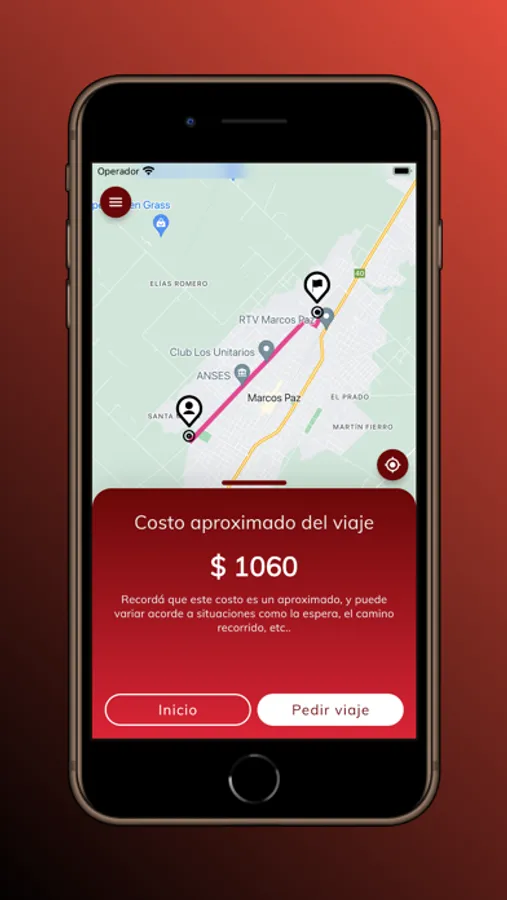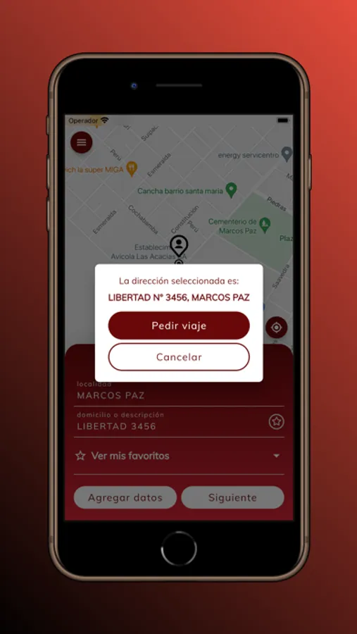 - Solicitud de viajes desde una ubicación elegida sobre un mapa o carga manual de calles.