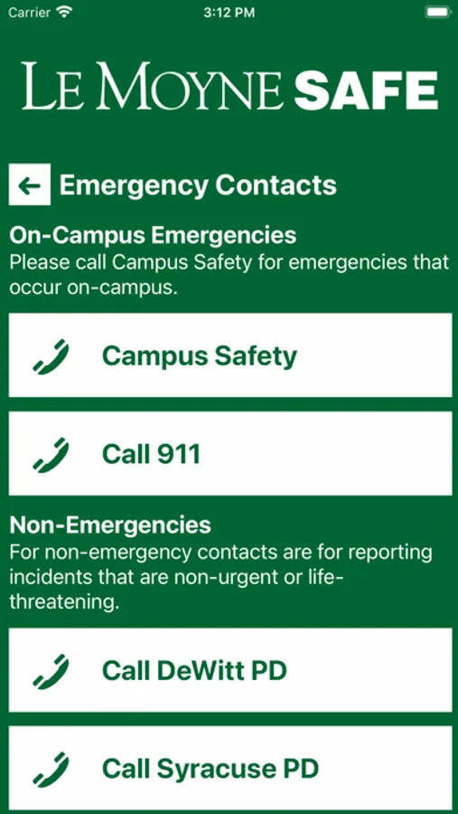 - Emergency Contacts: Contact the correct services for the Le Moyne College area in case of an emergency or a non-emergency concern