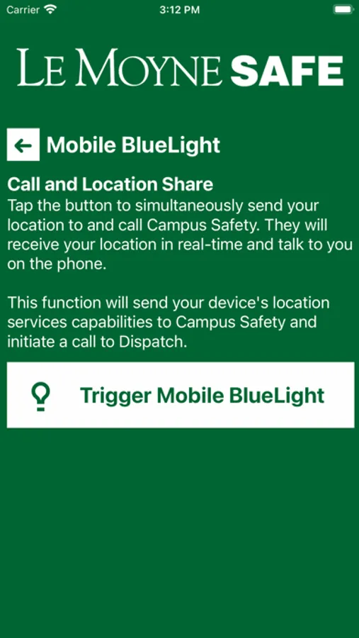 - Panic Button / Mobile Bluelight: Send your location to Le Moyne College security in real-time in case of a crisis