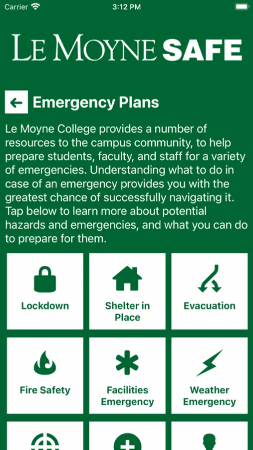 - Emergency Plans/Be Le Moyne Safe: Campus emergency documentation that can prepare you for disasters or emergencies. This can be accessed even when users aren’t connected to Wi-Fi or cellular data.
