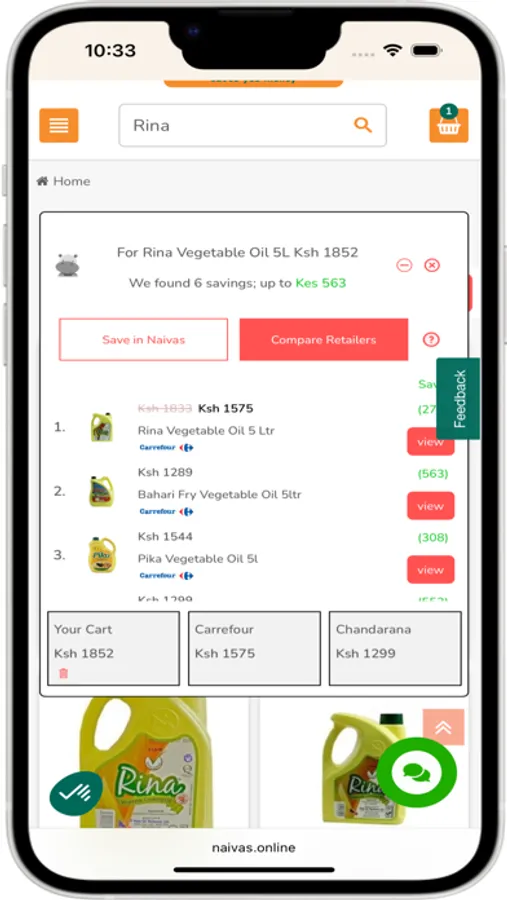 This web extension compares prices in Pick n Pay, Checkers and Woolworths in SA and Carrefour, Naivas, Chandarana, Quickmart and hotpoint in Kenya and finds the best savings as you shop online without interrupting your shopping experience.
