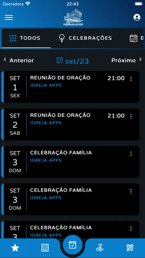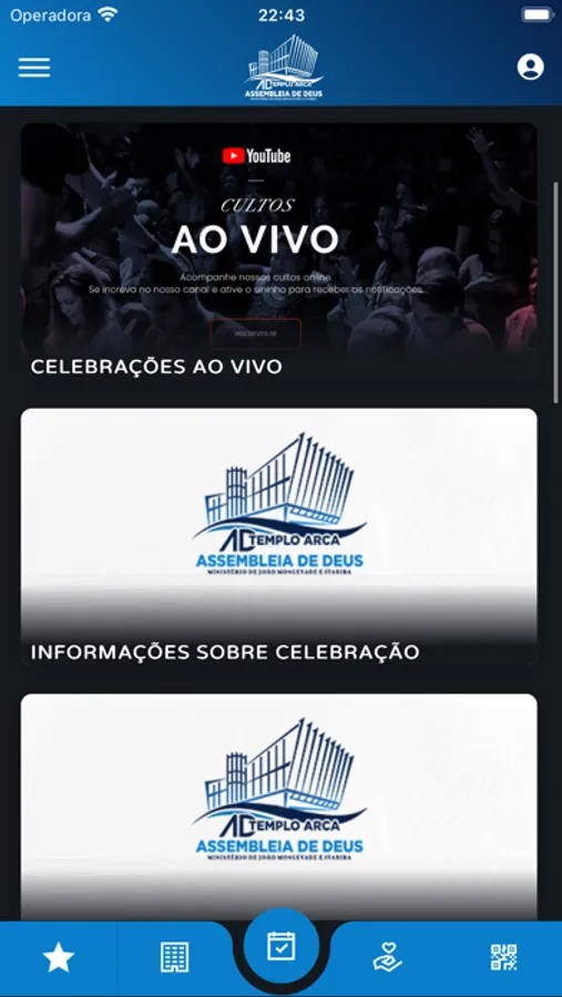 * Conteúdos (Áudio/Vídeo): Permite visualizar e ouvir os conteúdos da Igreja disponíveis no App;