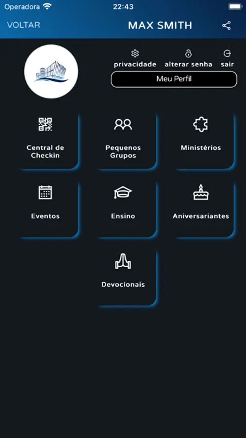 * No item Meu Perfil é possível atualizar seus dados cadastrais na Igreja;