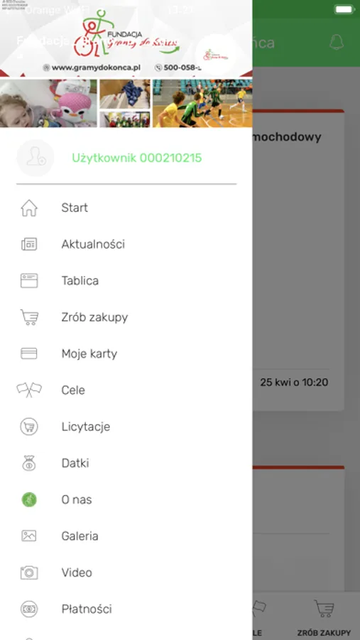 • rejestrujesz się w aplikacji 'Fundacja Gramy do Końca',