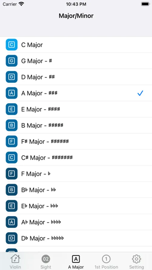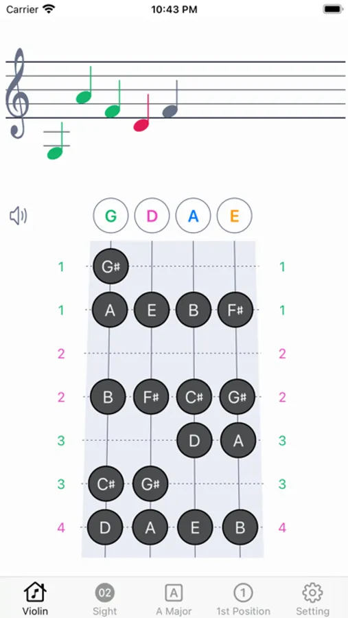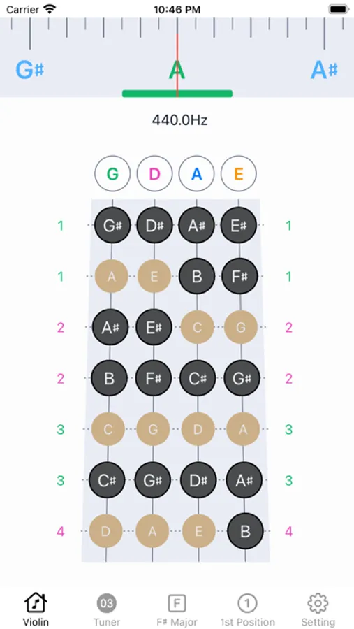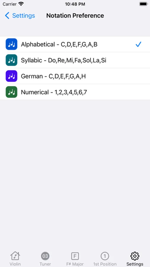 This mode evaluates your proficiency of the intonation for each key and position. You have to play the notes on your violin based on the notes displayed on the screen. Violin is required for this mode.