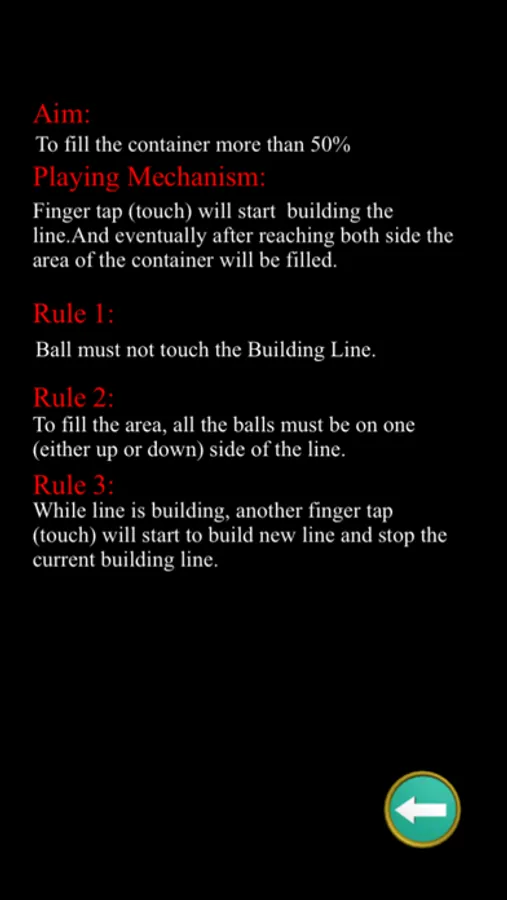 This is fun balls & strategy game. To win this game you have to fill atleast 50% of the container area. Your fingure touch will start building the line which will eventually fill the area after touching both side. Just make sure these jumping balls must not touch your building line. Also to fill certain area; all the balls must be on either side.