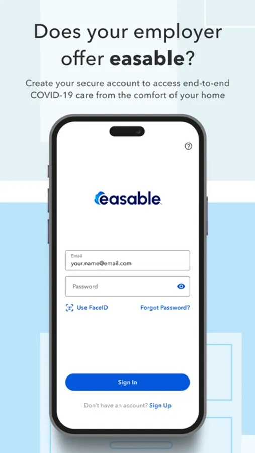 Get COVID-19 care with easable. Easable is an employer-sponsored digital health program that provides a streamlined, convenient, end-to-end COVID-19 care experience from the comfort of your own home.