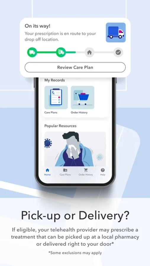 Feeling unwell or tested positive for COVID-19? Use easable to share your symptoms and test results and, if eligible, be evaluated by a telehealth provider to receive care. If you are prescribed a treatment, it can be picked up at a local pharmacy or delivered right to your door, generally in just a few hours.