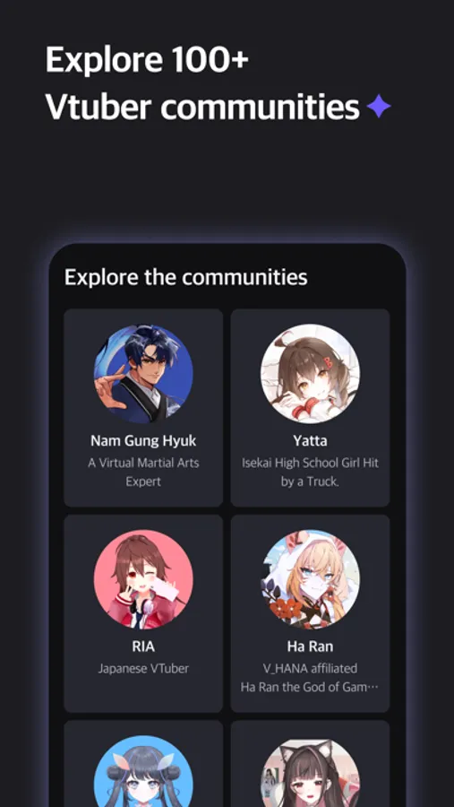 - The most exclusive VTuber platform for creators in Korea (find more than 100 creators)
