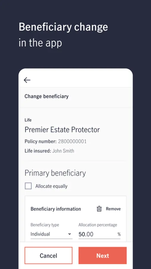 • Review individual insurance policy details and change beneficiary information in a few simple steps