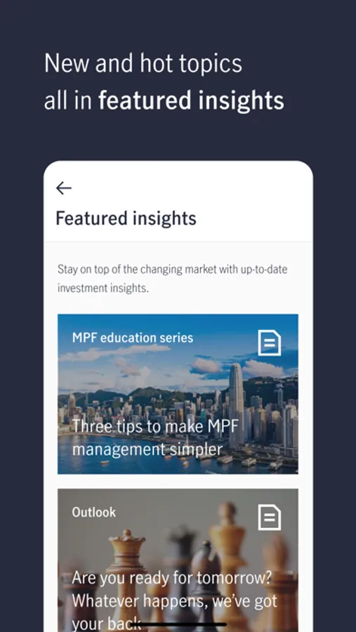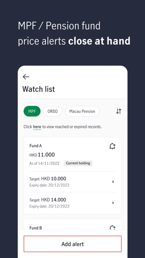 • Set MPF / Pension fund price alerts, switch funds and change investment instructions