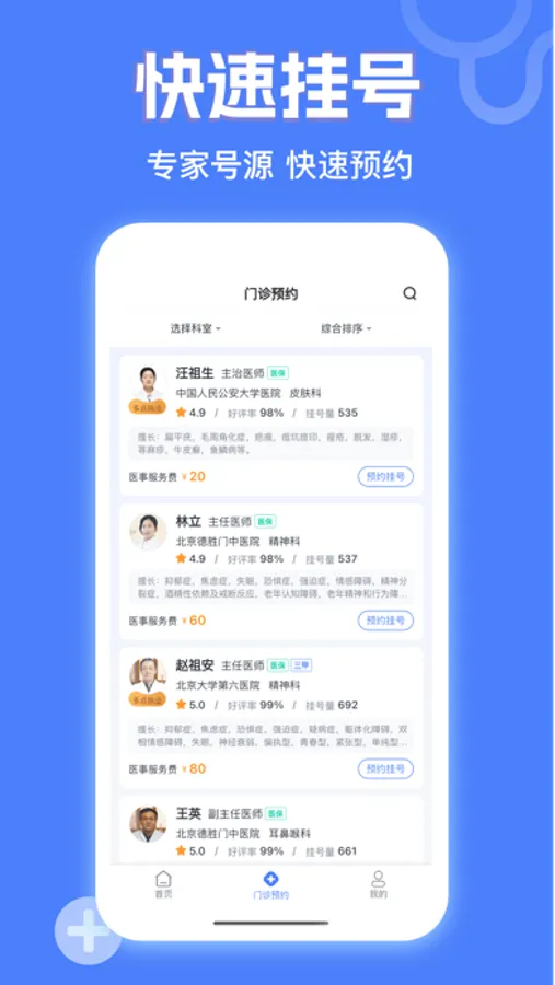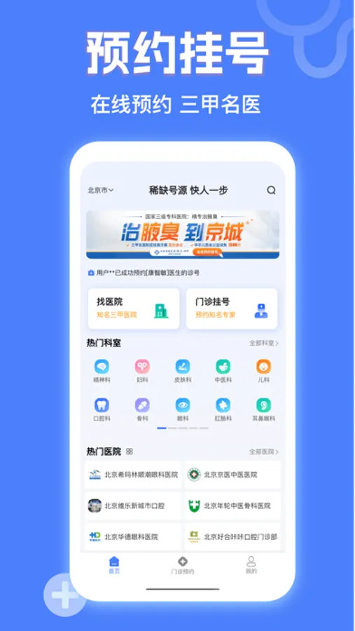京医挂号网-北京市医院免费预约挂号平台,基于移动互联网医疗技术,提供北京市三甲医院多点执业医生号源,方便患者挂号就医。拥有多个科室及数100位医生号源,免费提供预约挂号服务。