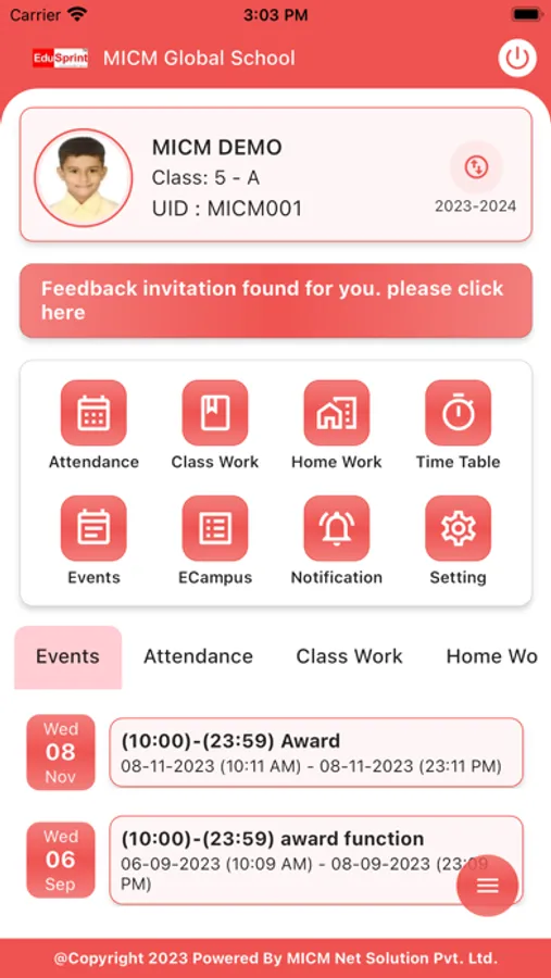 Note : Pleas ask your School to register with MICM Net Solution PVT LTD to get benefits of Edusprint Pro App (App Credentials will provided by school authorities only)