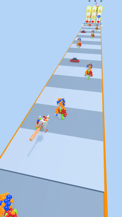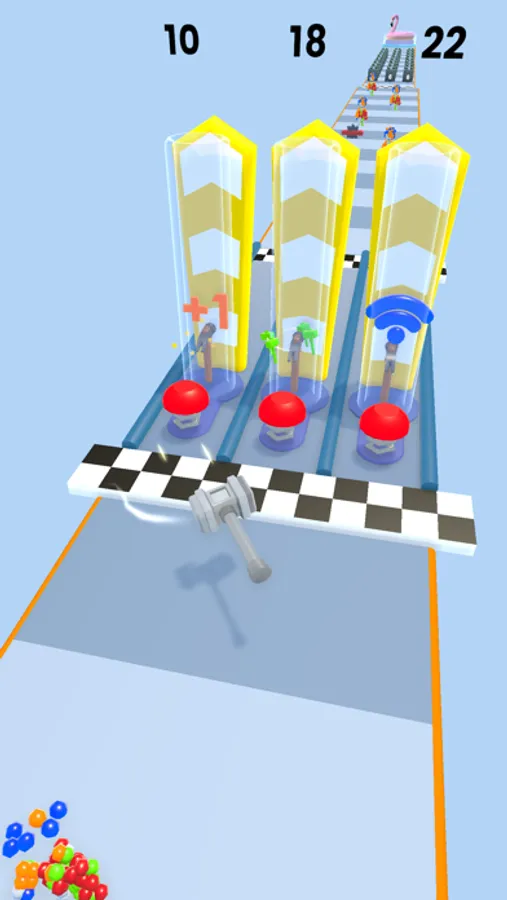 Play a mini game with the balls you have collected on top of the hammer. The more colored balls you gather, the more you will progress.