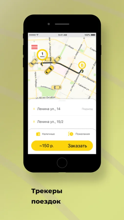 Откройте приложение, укажите адрес и закажите такси, нажав на одну кнопку.