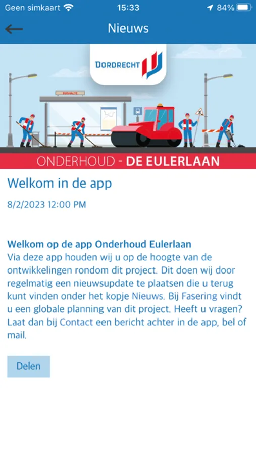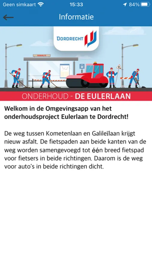 In deze app vindt u alle informatie over de werkzaamheden van het onderhoudsproject Eulerlaan te Dordrecht. Er worden relevante agenda puntjes, de laatste planning en contactinformatie weergegeven. Ook kunt u op deze app vragen, opmerkingen of klachten achterlaten die betrekking hebben op het project.