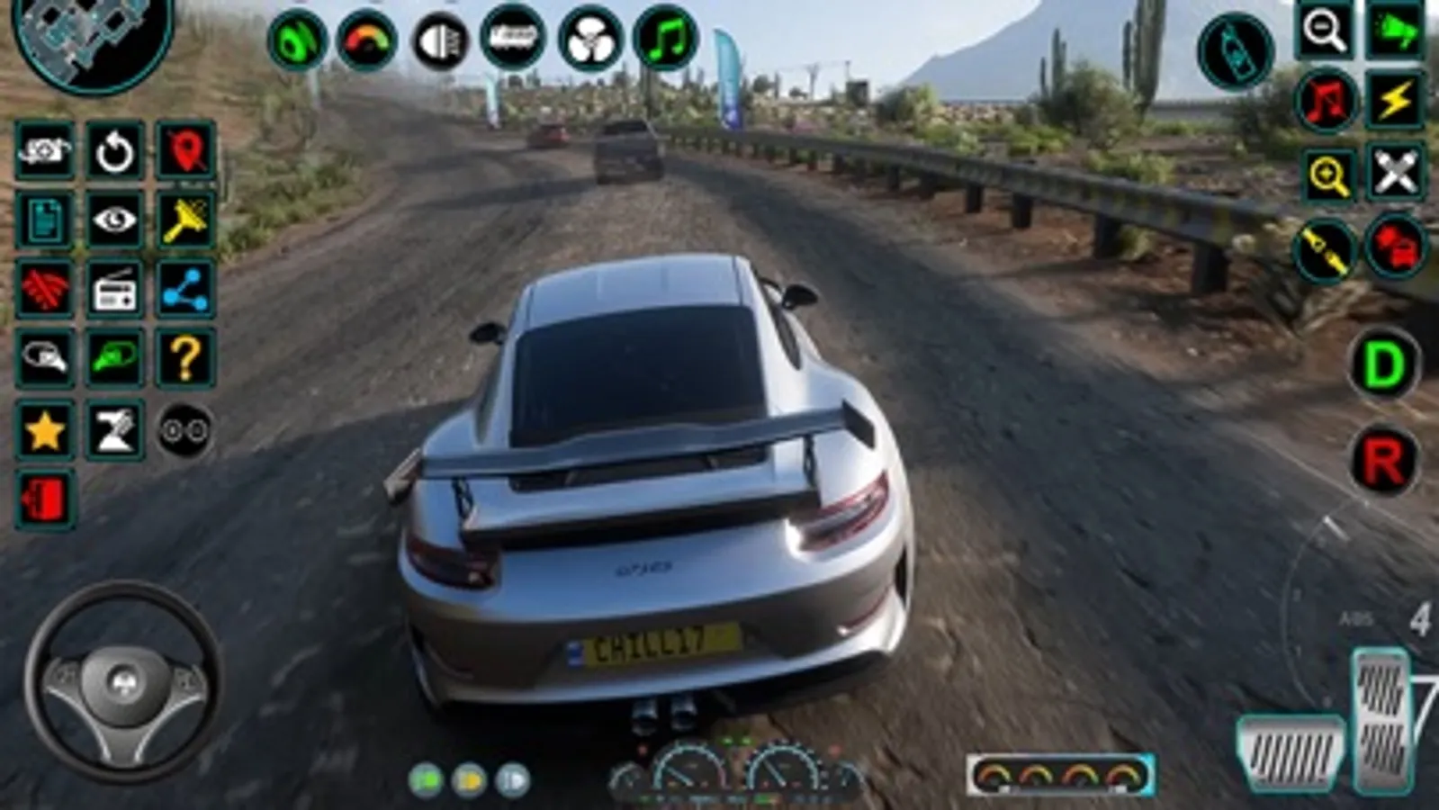 Different camera angles of the car driving game.