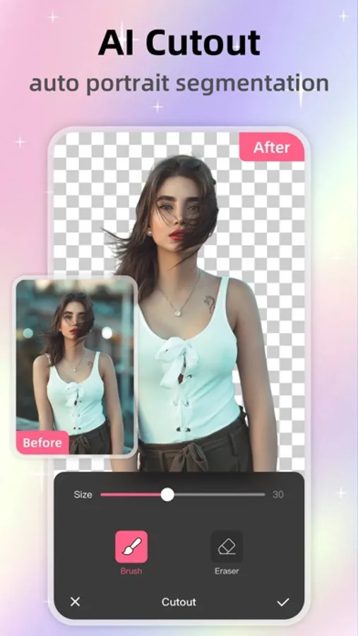 - Manually selection tools: eraser, a lot of manual tools to cutout if you are not satisfied with the result of the automatic cutout tool.