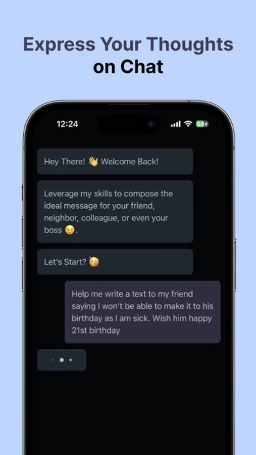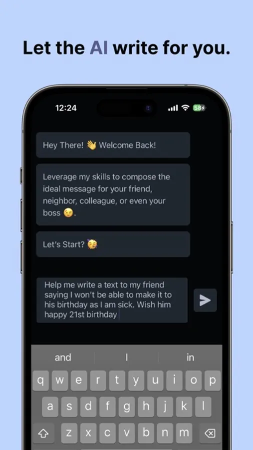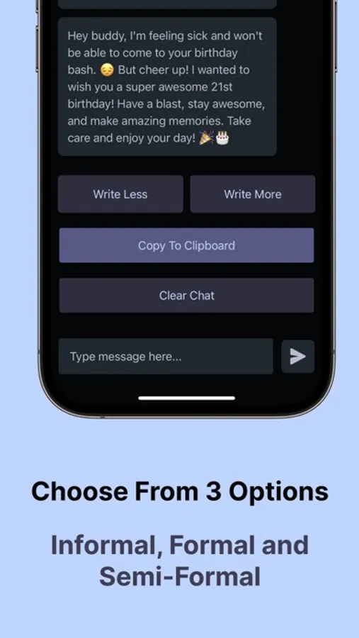 Welcome to AI For Messaging, your personal AI assistant for messaging! We understand that crafting the perfect message isn't always easy, especially when you want to balance tone and brevity. Our app bridges this gap with advanced AI technology that helps you draft concise, appropriate, and effective messages in a jiffy. AI For Messaging supports inputs in English, Hindi, and Hinglish, and crafts your thoughts into formal, semi-formal, or informal English texts, complete with emojis for that personal touch. Messaging made easy with AI For Messaging - enhancing your Messaging communication experience!