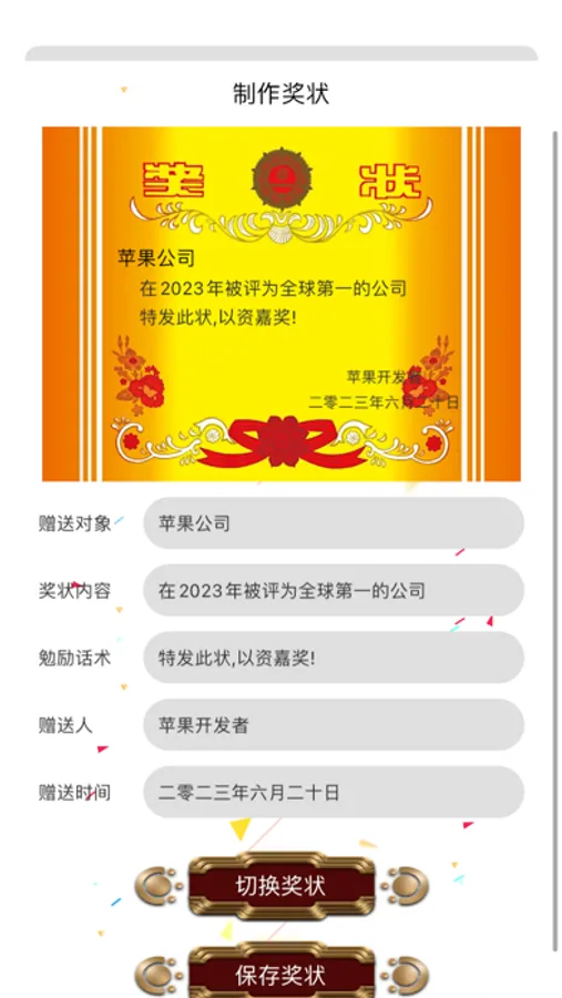 选择一个奖状模版,然后填上奖状信息,然后生成独一无二的奖状,送给你朋友,也可以给小朋友.