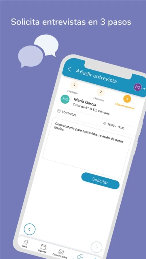 - Cómoda y ágil plataforma de comunicación con las familias.