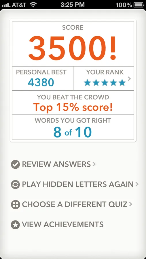 Quizzitive offers 10 difficulty levels, with quiz types from “Speed Drill” to “Name That Thing.” Master the words, beat your personal best, and see how your scores compare to the crowd.
