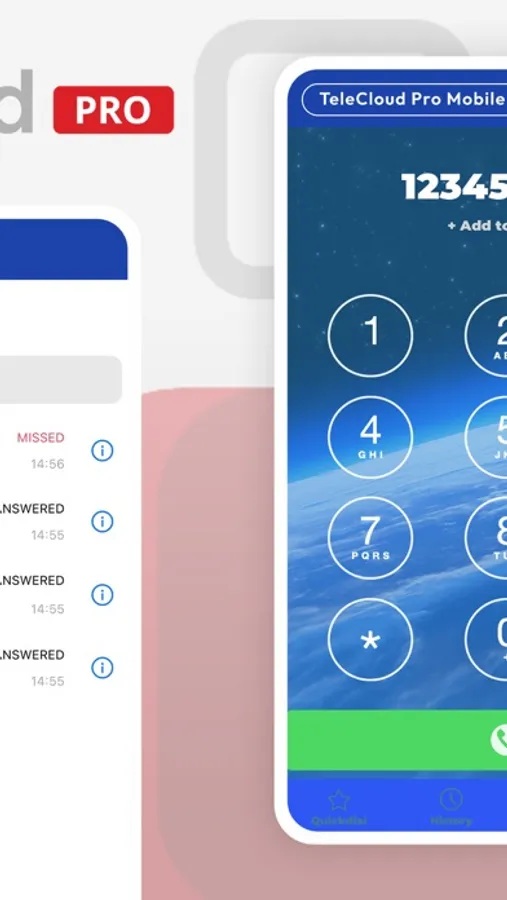 TeleCloud PRO is a soft client that extends the TeleCloud Phone System to your cell phone. It allows you to make calls from your cell phone as if you were calling from the office and receive calls. You can make free app to app calls between app users. It gives you the ability to see your voicemails and your call history. It also lets you change your greeting whenever you want.