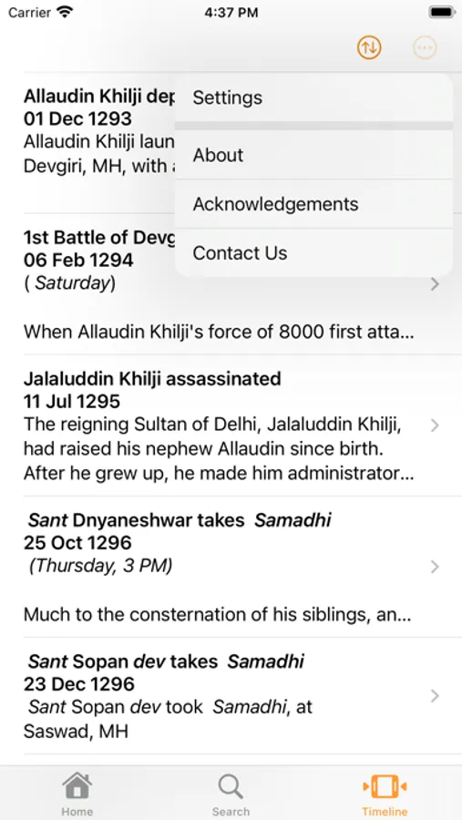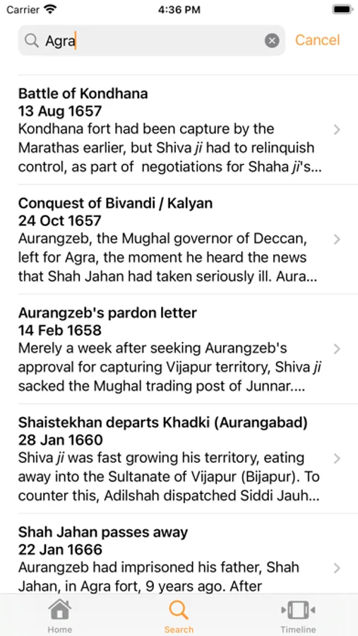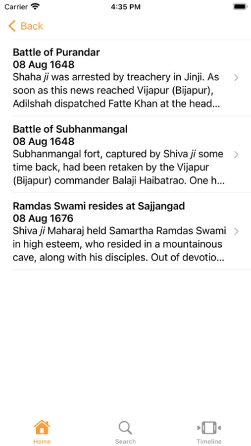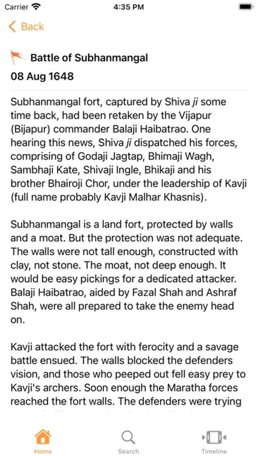 This interactive app tabulates all the events before and after Shivaji Maharaj's birth, his trials and tribulations which he overcame to establish the Maratha kingdom, which eventually blossomed into an Empire.