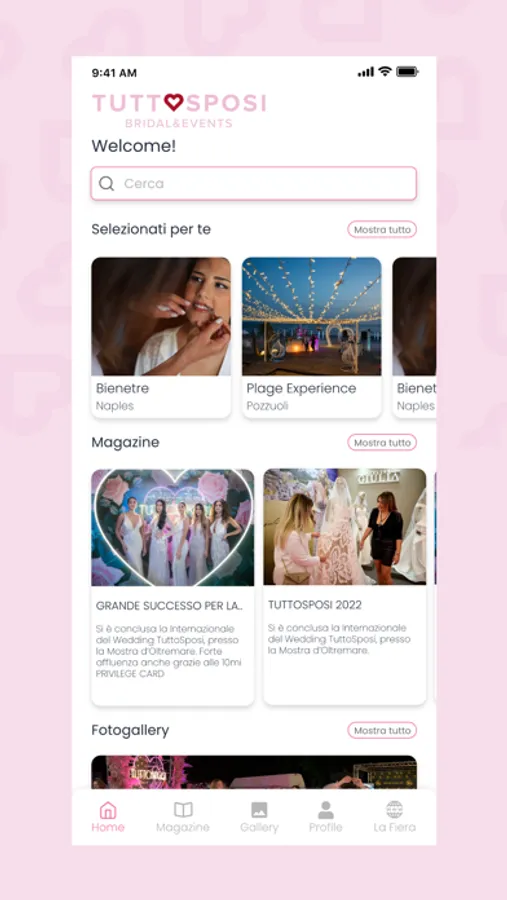 Immagina un luogo dove puoi trovare tutto ciò che serve per il tuo giorno speciale. Con TuttoSposi, hai il mondo dei matrimoni nel palmo della tua mano. Esplora una vasta gamma di abiti da sposa, fotografi, location da sogno, pacchetti viaggio e molto altro. Sogna, scegli e contatta gli specialisti per rendere il tuo giorno indimenticabile.