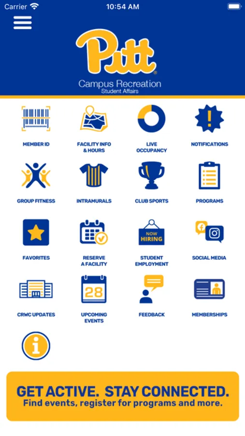 Pitt Campus Recreation is dedicated to to supporting the positive health and well-being of all students, faculty, and staff. Use the Pitt Campus Rec app to access facilities, receive important updates, and learn about our programs and services. View facility hours, submit reservation requests, and check out equipment. Register for group fitness classes, special events, and outdoor adventures. Participate in intramurals, join a club sports team, and get connected to others on campus! Explore employment opportunities, provide feedback, and manage your personal account to maintain your holistic wellness.