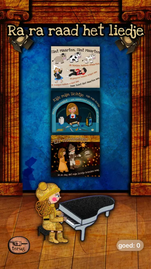 Laat het meisje een melodie op de piano spelen....Herken je het liedje? Tik op één van de 3 afbeeldingen, die het beste bij de melodie past. Goede antwoorden worden beloond!
