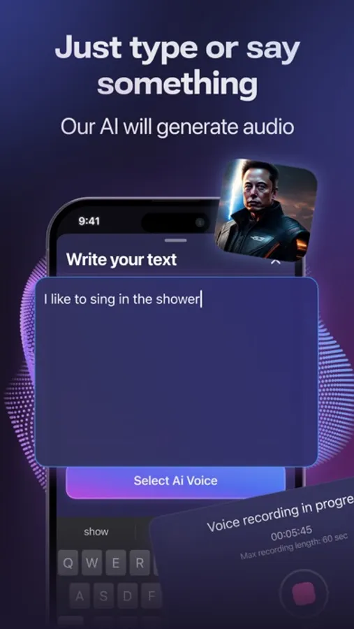 - Simple typing or speaking to generate a voice