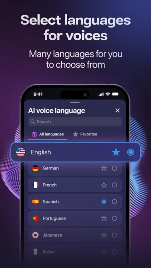 - Ability to add the desired voice to your favorites for easy access