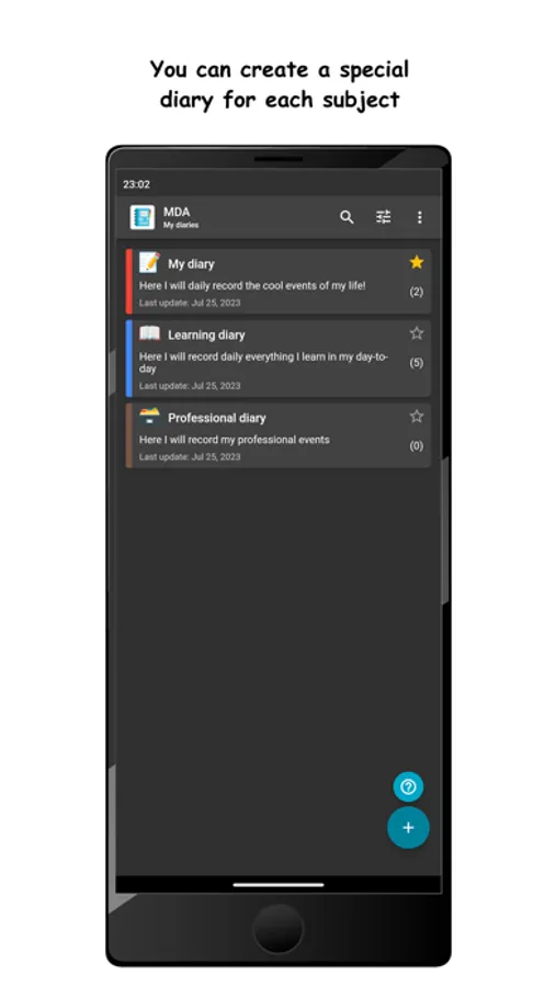 My Diary App (MDA) is the way for you to record your entire day by organizing everything into categories or different diaries!