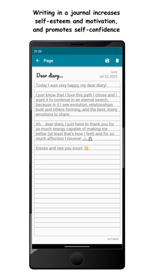 "Writing in a diary increases self-esteem and motivation, and promotes self-confidence."