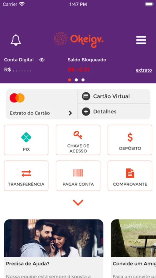 Conta Digital com pagamentos por depósito em conta, transferências, pagamento de Boletos, benefícios, serviços e outras funcionalidades que só uma Conta digital pode oferecer.