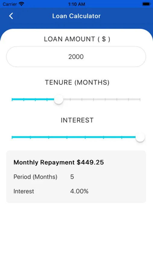 Annual effective rate of interests should not exceed 48% per annum according to the Moneylenders Act 2008. Interest rate may vary depending on customer’s financial position and relationship with us. The repayment ranges from 3 month to 72 months. For loan amount of S$2,000 with 3.92% per month and a repayment period of 3 months, the monthly instalment S$719.56, total interest is S$158.67 and total repayment amount is S$ 2,158.67