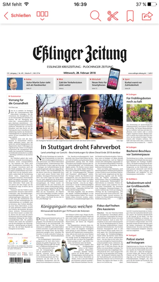 Ganz nah dran – mit der ePaper-App der Eßlinger Zeitung. Lesen Sie die Eßlinger Zeitung immer und überall bequem auf Ihrem Smartphone oder Tablet.