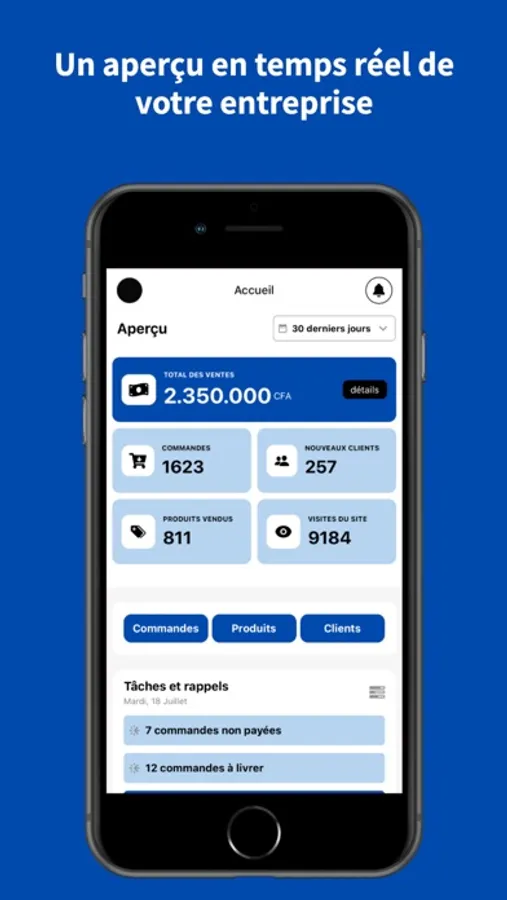 - Gestion des commandes et des clients : Gérez facilement toutes vos commandes et vos interactions avec les clients depuis une seule plateforme. Plus besoin de passer d'une application à l'autre pour suivre vos ventes et vos relations clients.