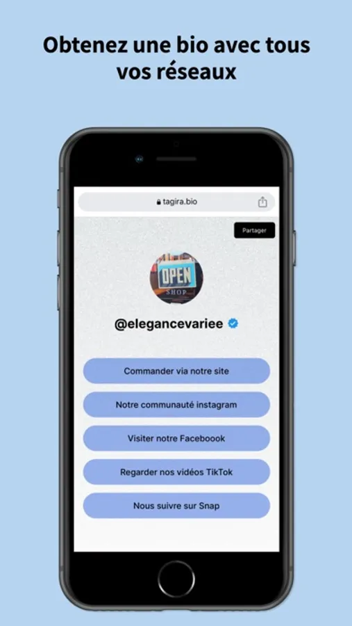 - Bio link : Centralisez tous vos liens importants dans une seule bio. Plus besoin de jongler entre plusieurs plateformes pour partager vos liens avec vos clients.