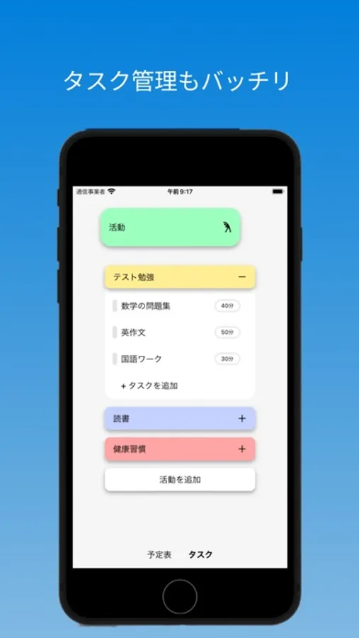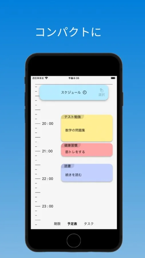 機能はコンパクトでわかりやすく、最小限の操作で手軽にスケジュール管理ができます。
