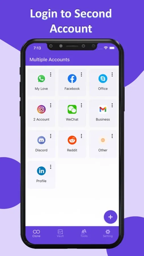 Clone a wide range of popular social, and messaging apps and use them simultaneously with Multiple Accounts.
