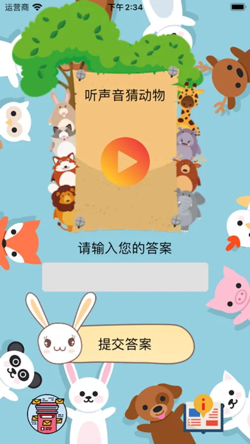 试听动物的叫声,然后再下面输入框输入动物的名字.