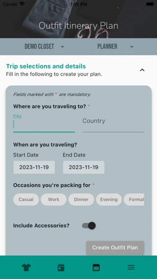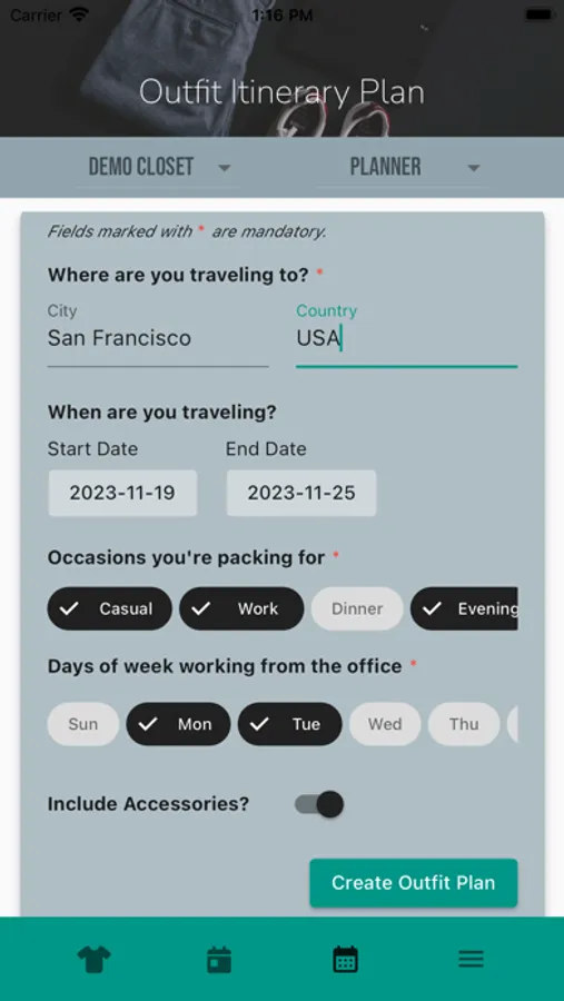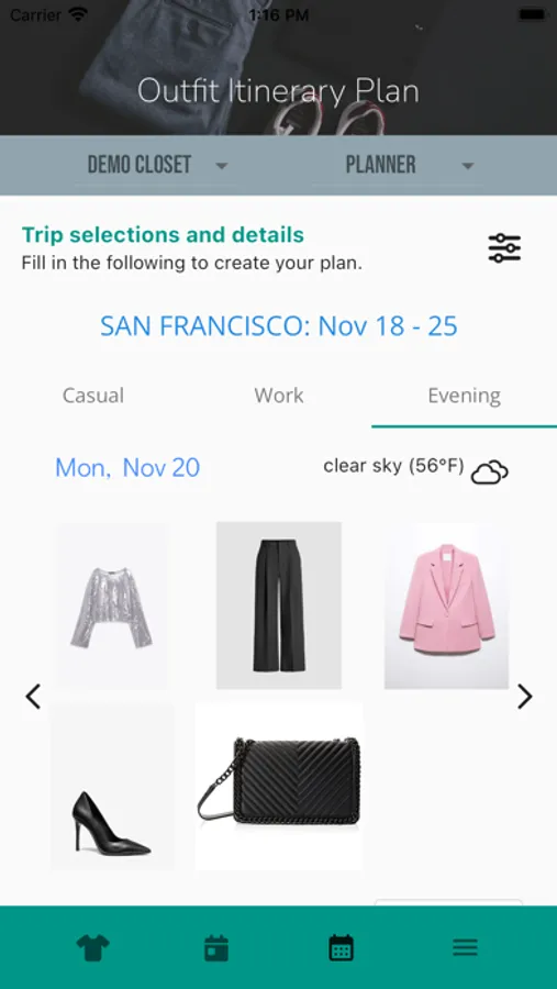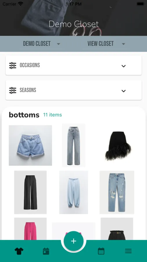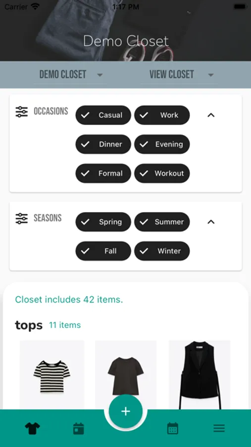 - View and mange your closet virtually, with the option to filter by season and/or occasion to more easily scan all the items in your closet.