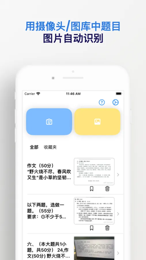 - 通过图片自动识别题目(拍试卷/图片库中保存的图片)
